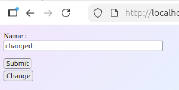 Maintenant si on appuie sur le bouton « Change » qu’on vient de créer, on voit que notre input change de valeur et contient bien le texte « Changed » qui a été assigné à notre nameFormControl :