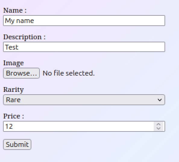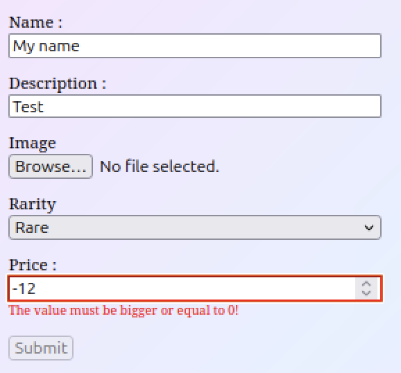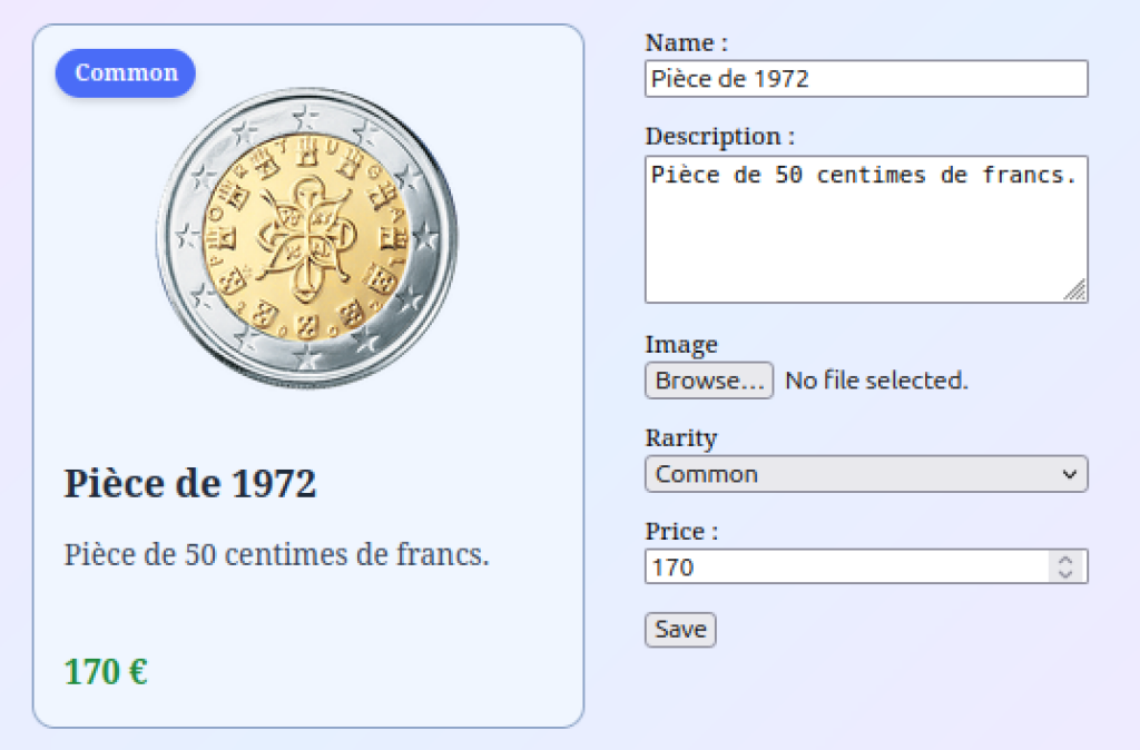 A la fin de ce chapitre on aura un formulaire simple qui nous permettra de créer et modifier un objet de collection.