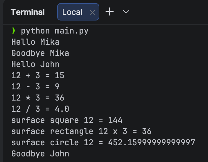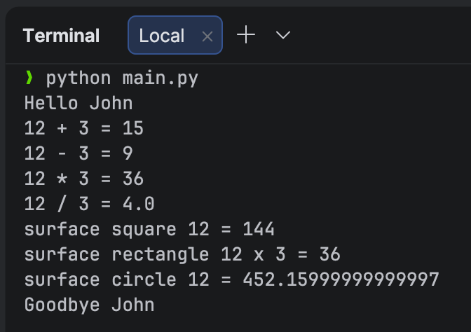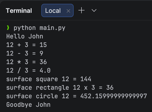 goodbye(name)from geometry import surface_circle, surface_rectangle, surface_square