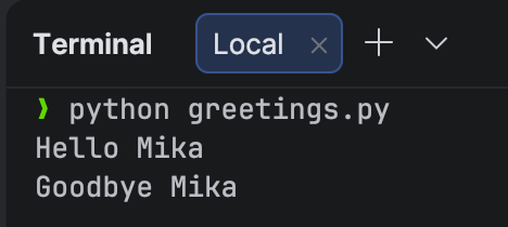 Et maintenant si on execute le fichier greetings.py on a toujours le résultat suivant :