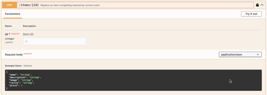 | PUT /items/{id} | Permet de modifier un objet de collection |