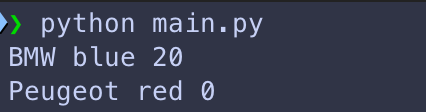 print(blue_car.brand, blue_car.color)