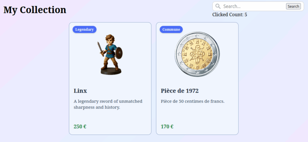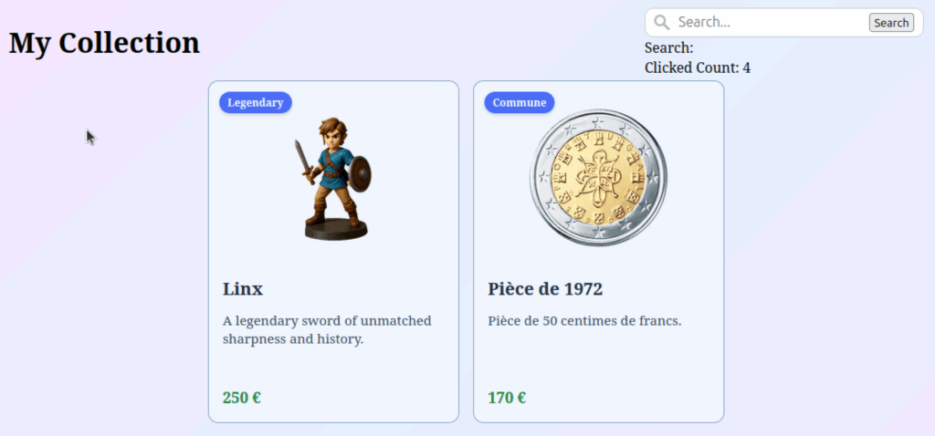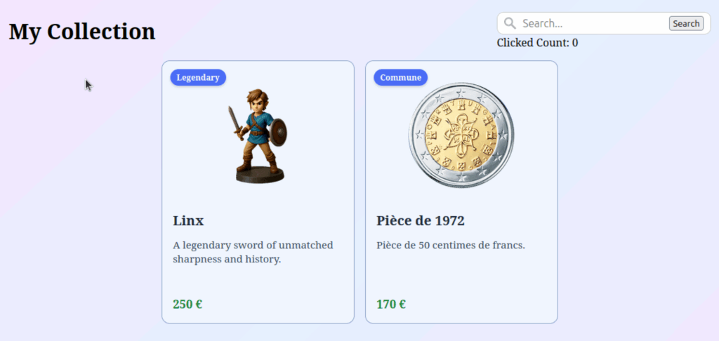 </section>Là aussi, si vous ouvrez votre navigateur et cliquez sur le bouton de recherche, vous verrez que votre compteur de clics est bien mis à jour.